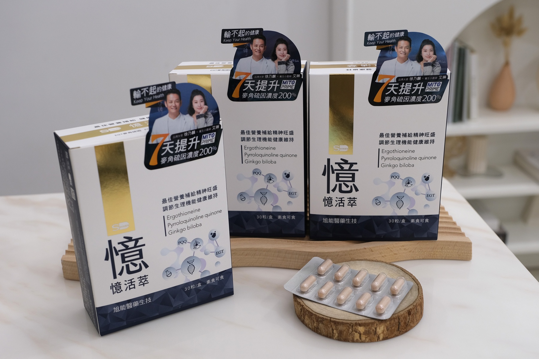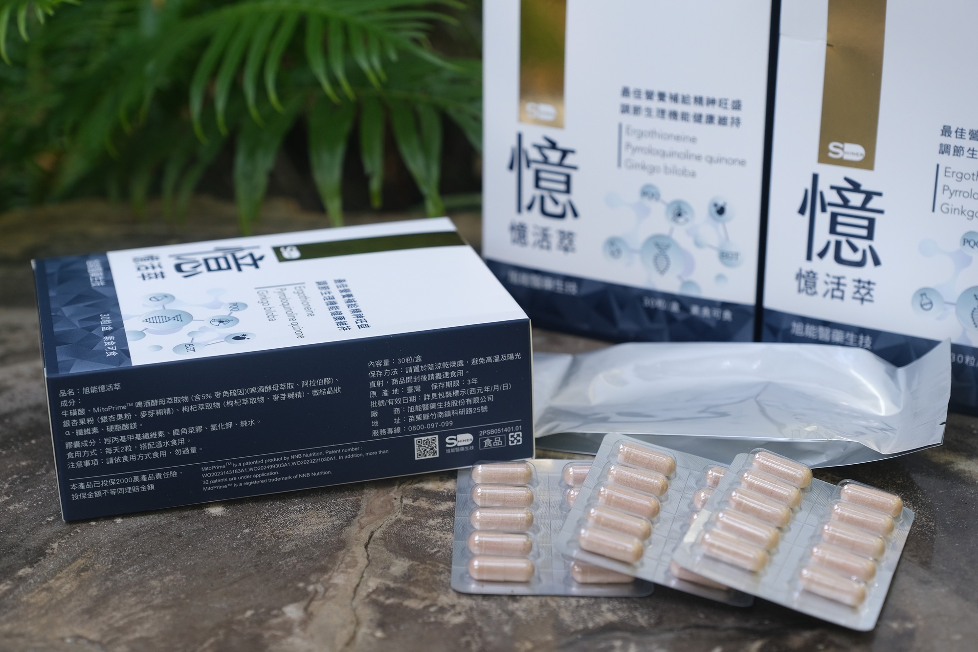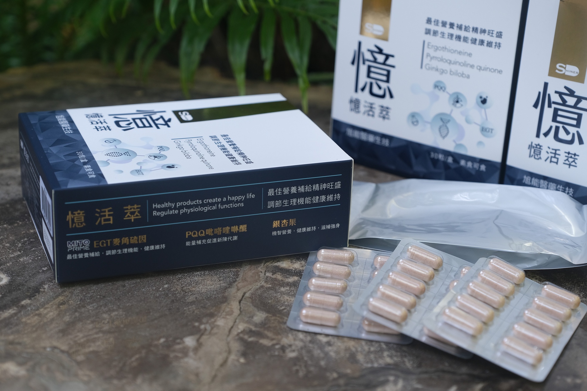 「SHINER憶活萃」來自旭能醫藥生技,是擅長製作罕見藥物、特殊疾病為主的台灣知名藥廠。SHINER憶活萃足量添加了最新逆轉青春元素「專利MITO麥角硫因」,可有效逆轉時光、提升肌膚亮度、調整體質與營養補給,與青春之源「PQQ(枸杞萃取物)」,可掌握思緒清晰關鍵,讓你做事有條理、記憶清晰不卡頓,還能提供能量補給讓你精神飽滿,更添加了「銀杏果萃取物」,讓你清醒靈光、專注力提升,更有添加「牛磺酸」,讓您精神飽滿、粒量滿滿
